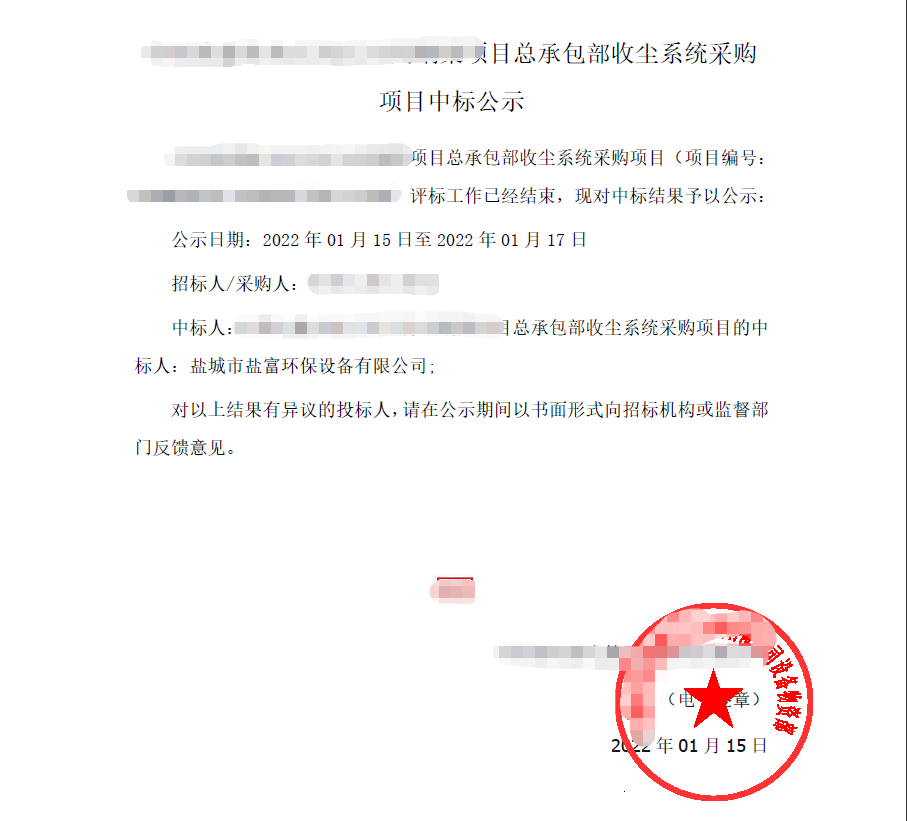 開年傳喜訊,近日從招標(biāo)單位傳來好消息,鹽富環(huán)保成功中標(biāo)又一大型砂石骨料項(xiàng)目總承包收塵系統(tǒng),實(shí)現(xiàn)開門紅。